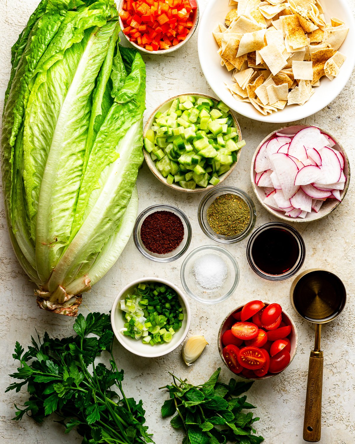 Ingredients for Lebanese Fattoush Salad