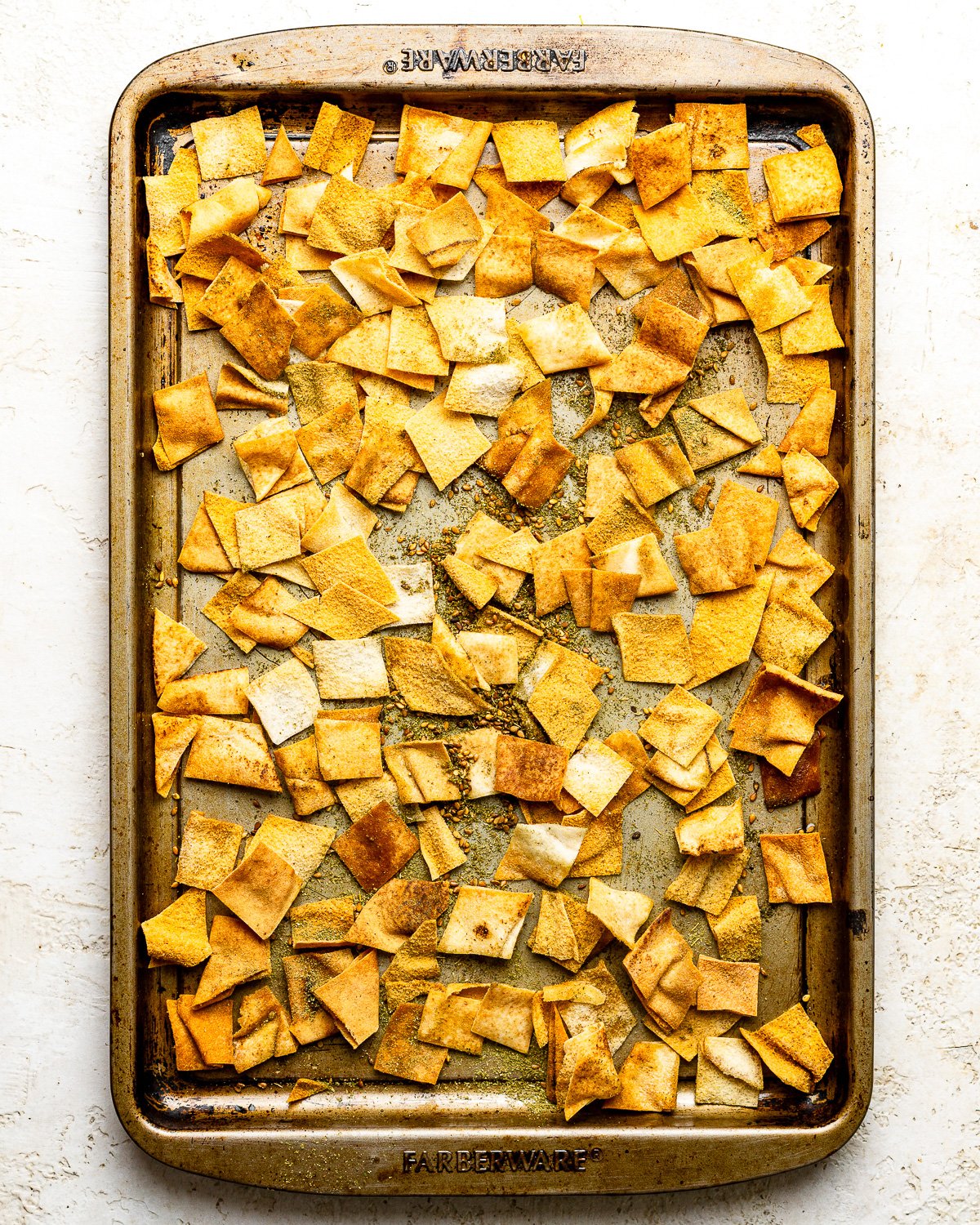 - Crispy baked pita adds texture and heartiness